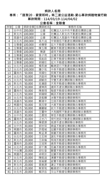 「匯聚20,愛要即時」第二波公益活動-愛心募款芳名錄